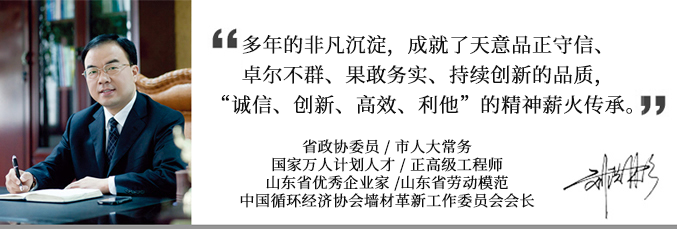 時(shí)光荏苒,風(fēng)雨砥礪,多年的非凡沉淀,成就了天意品正守信、卓爾不群、果敢務(wù)實(shí)、持續(xù)創(chuàng)新的品質(zhì),“誠信、創(chuàng)新、高效、利他”的精神薪火傳承。持續(xù)發(fā)展的品牌戰(zhàn)略和永不停息的創(chuàng)新步伐成就天意今天的輝煌。