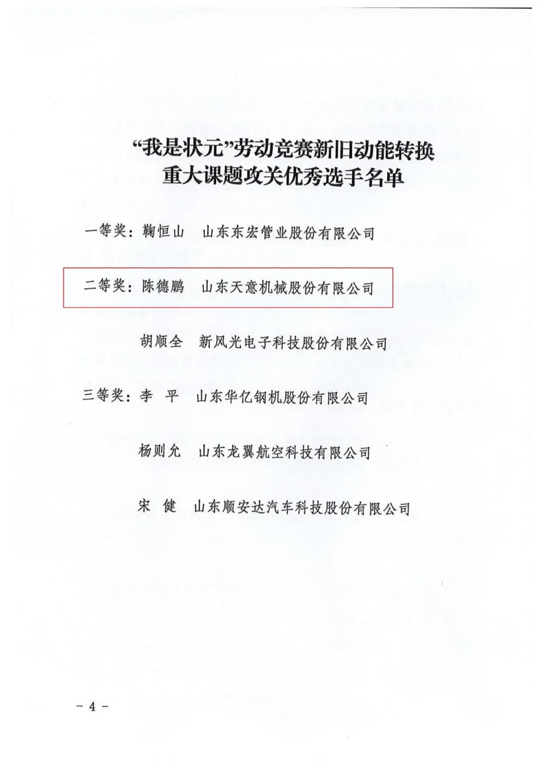 我司陳德鵬獲得濟(jì)寧市“我是狀元”勞動(dòng)競(jìng)賽新舊動(dòng)能轉(zhuǎn)換重大課題攻關(guān)競(jìng)賽單元二等獎(jiǎng)