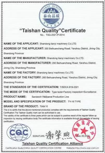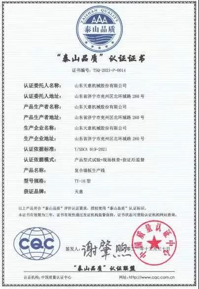 虎年伊始添新榮丨天意機(jī)械榮獲“泰山品質(zhì)”認(rèn)證證書(shū)
