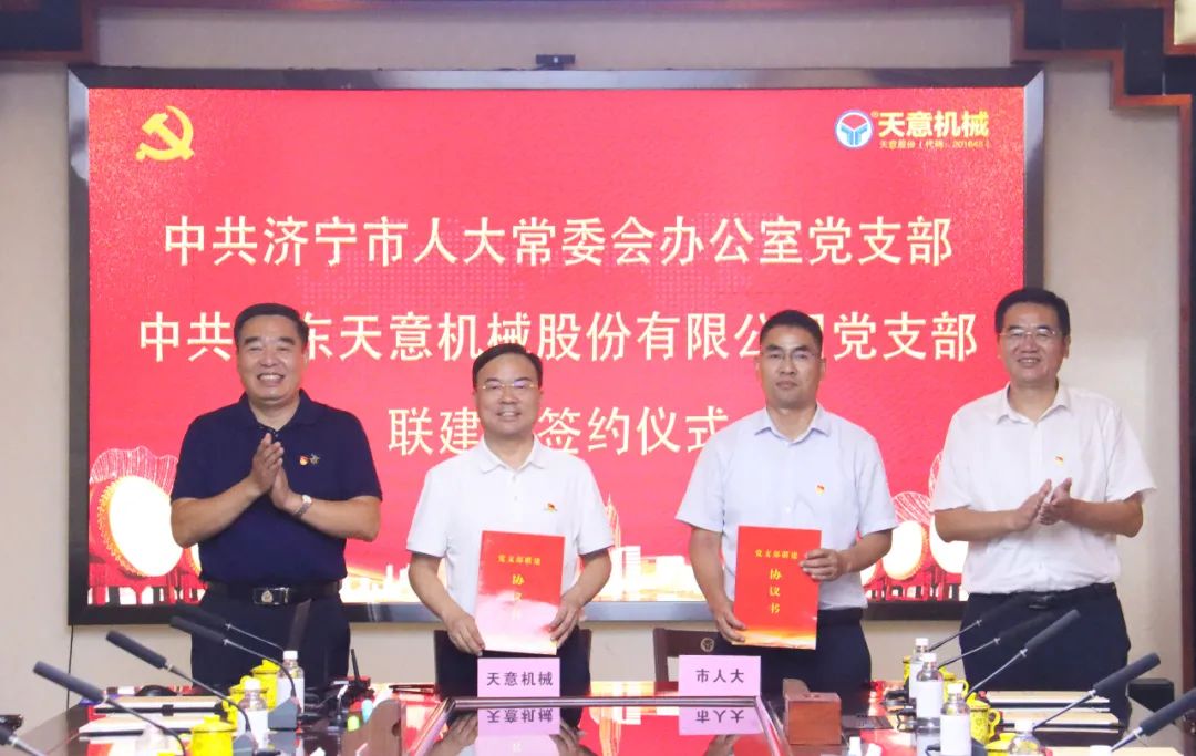 7月26日,中共濟(jì)寧市人大常委會(huì)辦公室黨支部與中共山東天意機(jī)械股份有限公司黨支部舉行聯(lián)建暨簽約儀式,雙方進(jìn)一步加強(qiáng)基層黨組織建設(shè),推動(dòng)雙方黨組織協(xié)同發(fā)展,構(gòu)建結(jié)對(duì)幫帶、雙向促進(jìn)、共同提高的基層黨建格局。