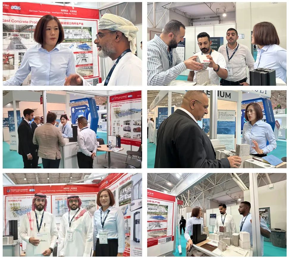 2023年沙特建筑建材及基礎(chǔ)設(shè)施展于9月11日在利雅得前沿展覽中心盛大舉辦,來自沙特阿拉伯、中國、德國、意大利、新加坡等國家的200多家公司參展,天意機(jī)械攜裝配式建筑裝備(墻板裝備、PC裝備、ALC裝備、涂裝板裝備)系列產(chǎn)品亮相展會。