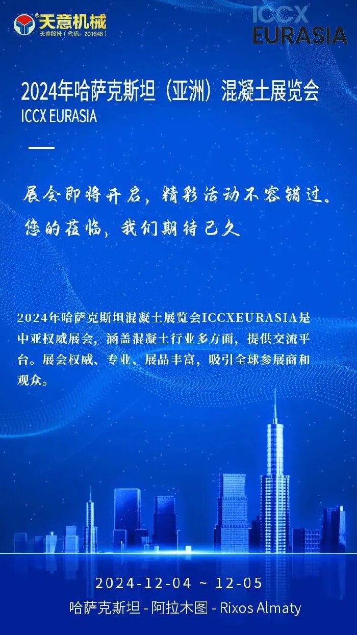 征程在即丨天意機(jī)械即將亮相2024年哈薩克斯坦混凝土展覽會(huì) ICCX Eurasia