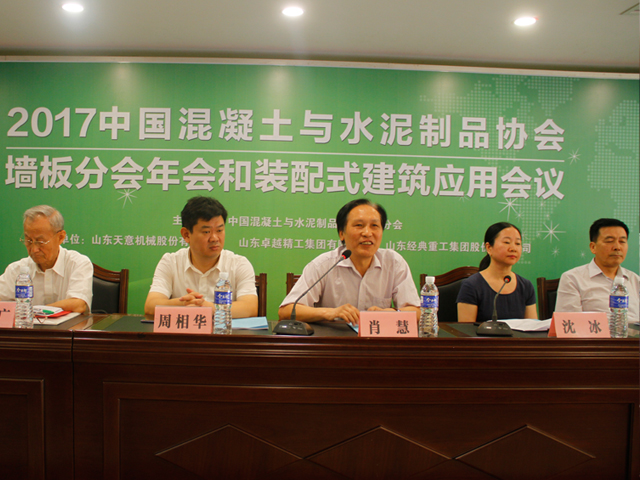 2017年6月23日~24日,由中國(guó)混凝土與水泥制品協(xié)會(huì)主辦、山東天意機(jī)械股份有限公司承辦的中國(guó)混凝土與水泥制品協(xié)會(huì)墻板分會(huì)2017年度會(huì)議和裝配式建筑應(yīng)用會(huì)議在山東省濟(jì)寧市兗州區(qū)盛大召開!