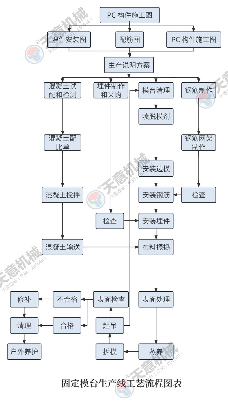 PC固定模臺生產(chǎn)線車間采用模具固定,作業(yè)設(shè)備移動的生產(chǎn)方式。