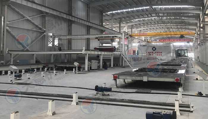 產(chǎn)品展示PC環(huán)形疊合板生產(chǎn)線采用高精度、高結(jié)構(gòu)強(qiáng)度的成型模具,經(jīng)自動布料機(jī)把混凝土澆筑其中、振動臺振搗后并不立即脫模,而是經(jīng)預(yù)養(yǎng)護(hù)、蒸汽養(yǎng)護(hù),使構(gòu)件強(qiáng)度滿足設(shè)計(jì)強(qiáng)度時(shí)才進(jìn)行拆模處理,拆模后的成品構(gòu)件運(yùn)輸至成品暫存區(qū)或室外堆場,而空模臺沿輸送線自動返回,形成自動化環(huán)形流水作業(yè)。